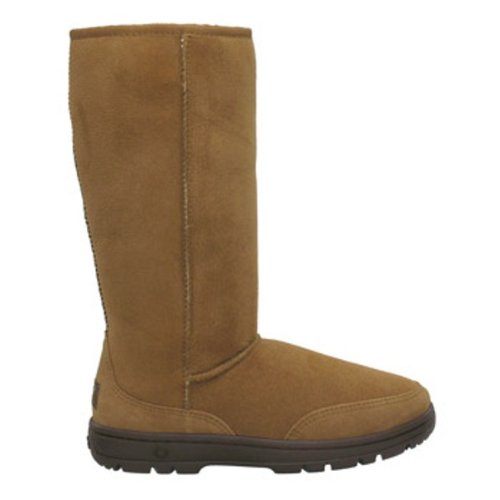 The UGG Ultra Tall women's boot is made with 100% premium twinfaced sheepskin that wicks moisture away from your feet. The lugged outsole and removable/replaceable insole is great for both comfort and function. The heritage UGG® Australia Tasman woven tape on the back of the boot adds a little something special to this tall boot.